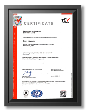 We at Eskay Industries are manufacturers of Aluminum Gravity Die Castings, Shell Cores & Tooling's, since year 2005. At our plant we have capacity to produce 300 tons of shell core 50 tons of aluminum castings per month.